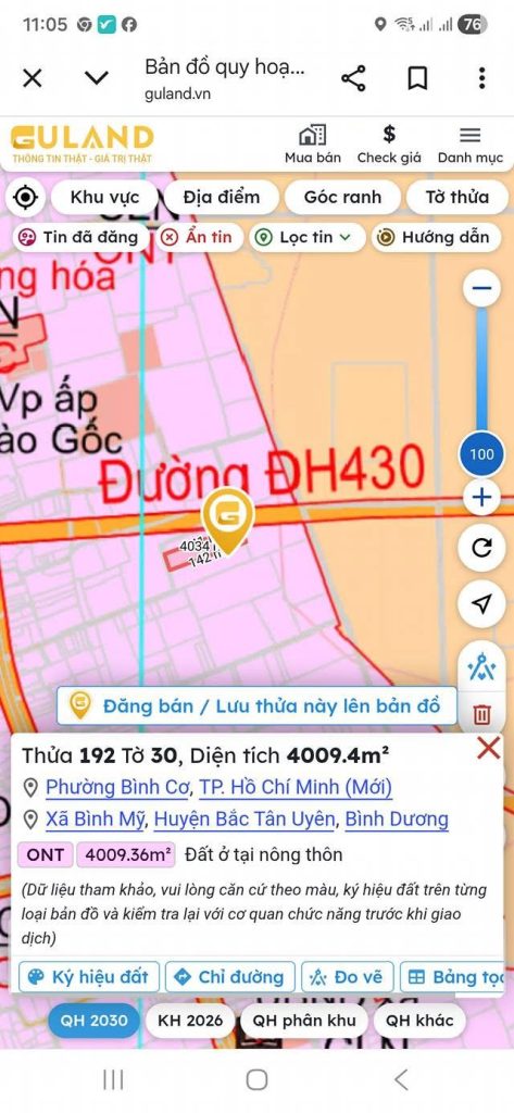 • Sau lưng quy hoạch đường ĐH 430