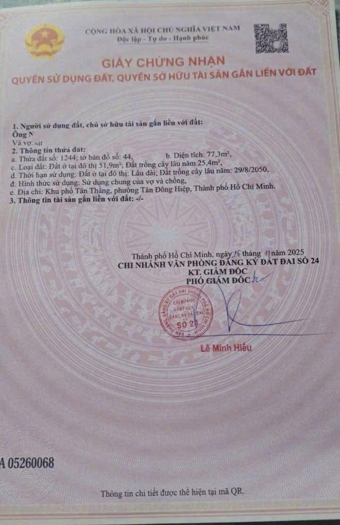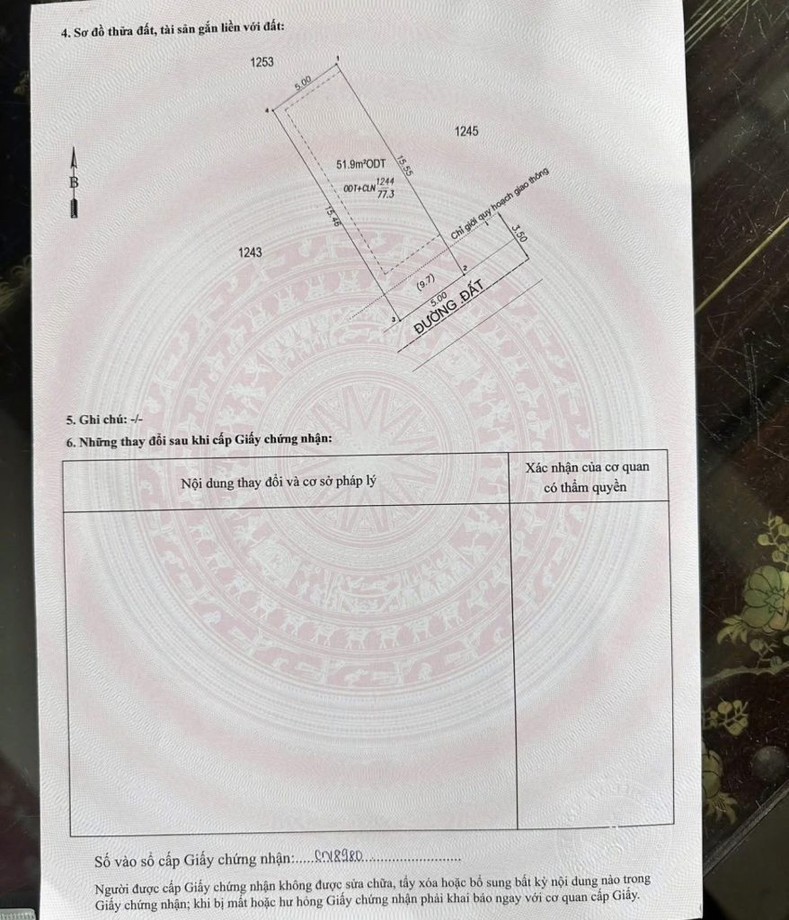 • Thổ cư: 52m²